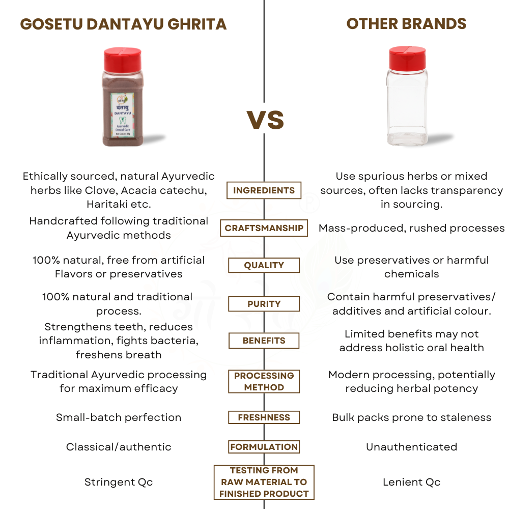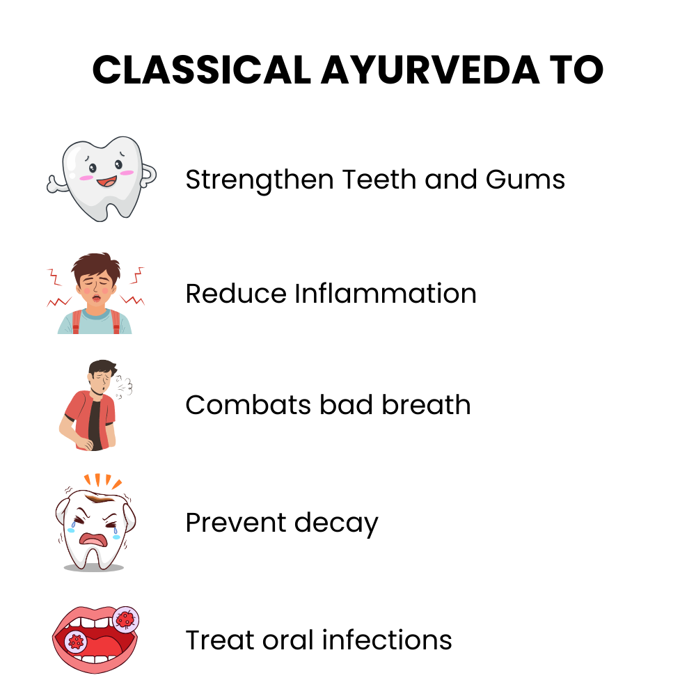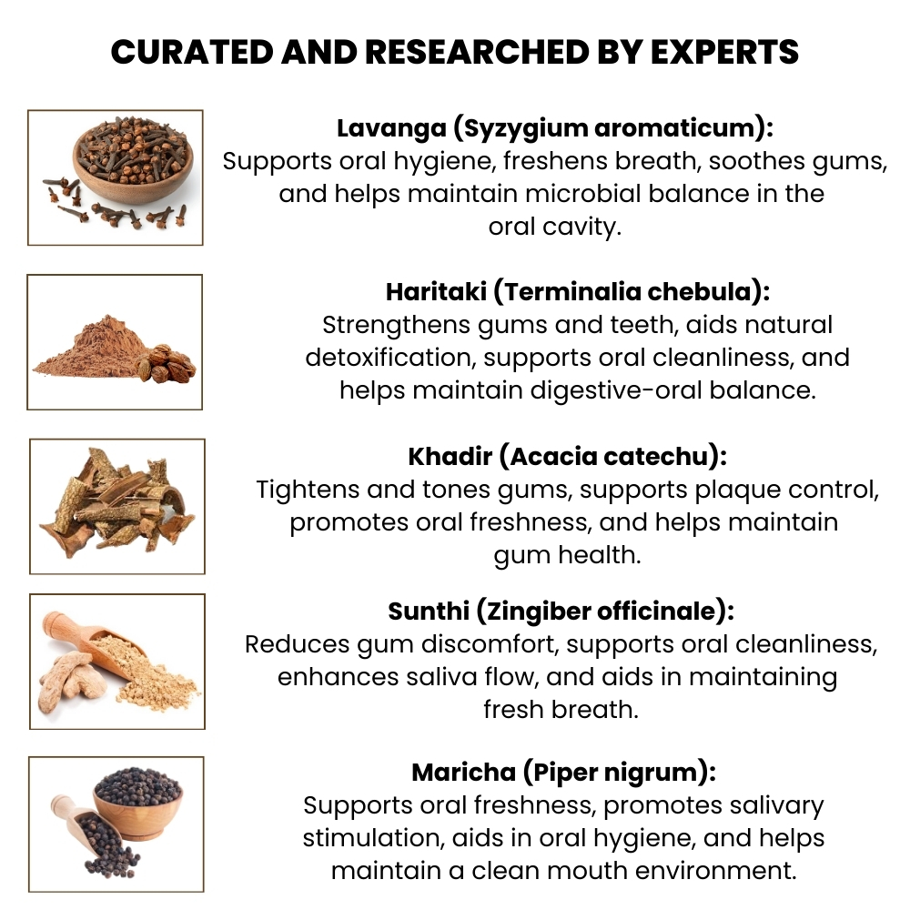 With Khadir and Haritaki supporting strong teeth and healthy gums, and Lavanga and Sunthi aiding oral freshness, Dantayu complements daily oral care for long-term wellness.