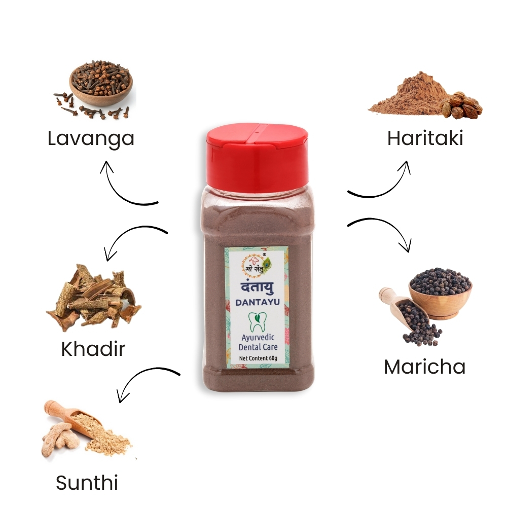 Dantayu is a classical Ayurvedic Dashansanskar Churna designed to support daily oral hygiene. This blend of natural powders helps maintain oral cleanliness, fresh breath, and gum comfort.