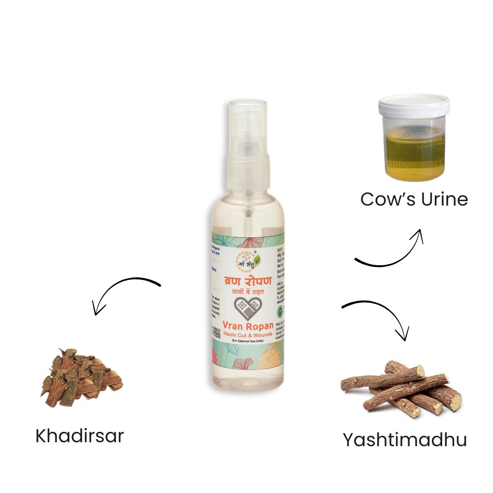 Shree Kamdhenu Divya Aushadhi Mahila Shakari Mandali Jamnagar, Gujarat.Product Name Vran Ropan Product Dimension - Individual 8cm x 8cm x 19cm Product Dimension - Bulk 13cm x 25cm x 19cm Product weight - Individual 280gm Product weight – Bulk 2470gm Brand Name Gosetu Net Quantity 100ml Best Before 12 months Marketer Details Kamdhenu Artha Setu Jamnagar, Gujarat. Manufacturers Details
